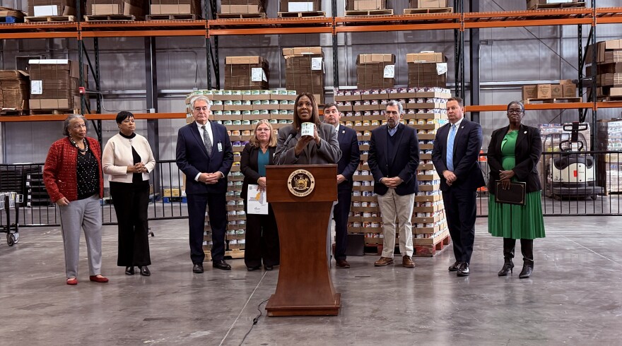 During a news conference Monday held at the Food Bank of Central New York in Syracuse, Attorney General Letitia James said two companies, Marine Park and Formula Depot, raised prices 60% more than was allowed under the law during a baby formula shortage in 2022.