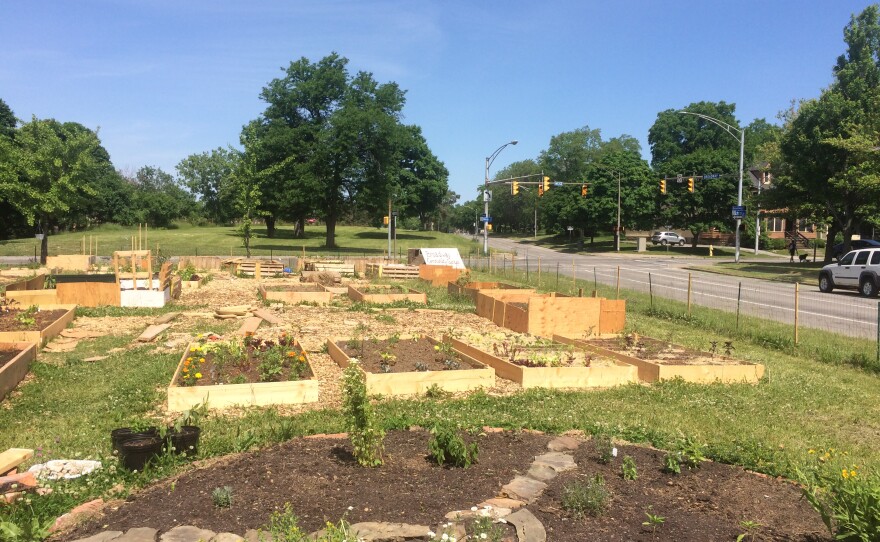 Well, we’re far from the country out here. Steps away from a 490 overpass on the corner of Broadway and Meigs is the Broadway Community Garden, which is run by the 490 Farmers group.