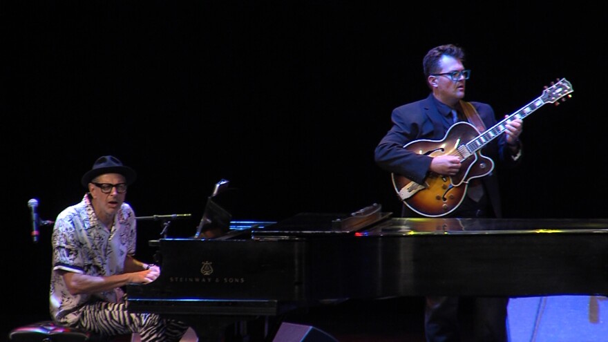 Goldblum first stumbled out onto the stage as if he'd landed into the wrong room, promising to be back soon after John Nugent — the Abbott to Goldblum's Costello — dragged him backstage to get ready.