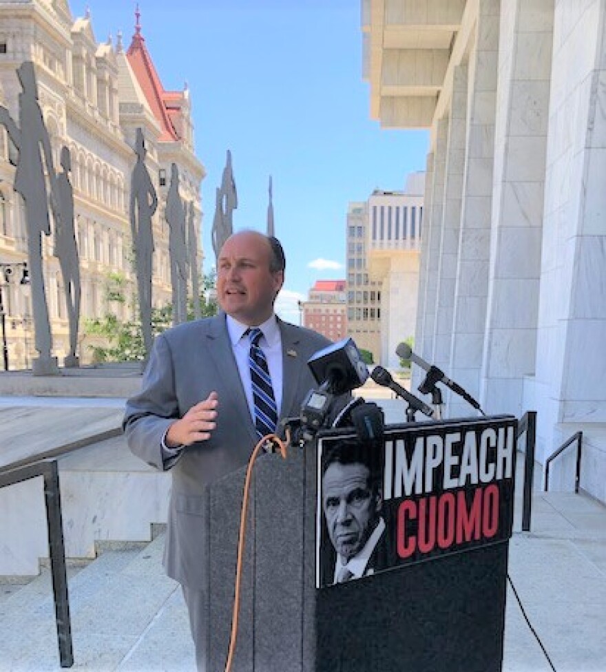 State Republican Party Chair Nick Langworthy held a news conference Thursday outside the Capitol.