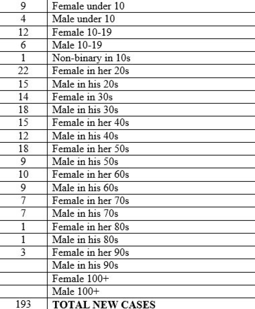 In the data released on Monday, there were 193 new confirmed cases, and no new deaths.