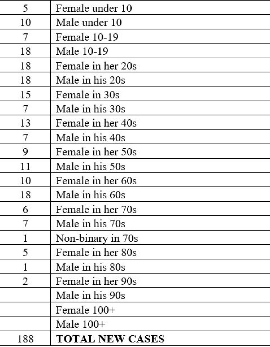 Monroe County on Sunday reported 188 new cases of COVID-19 and no new deaths.
