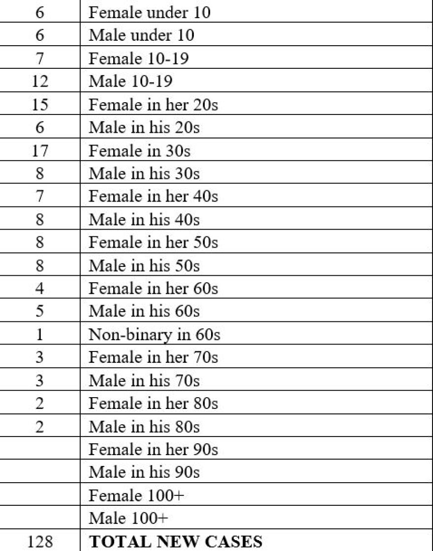 In data released by the Monroe County Department of Public Health on Sunday, there were 128 new cases of COVID-19. There were no new deaths reported.