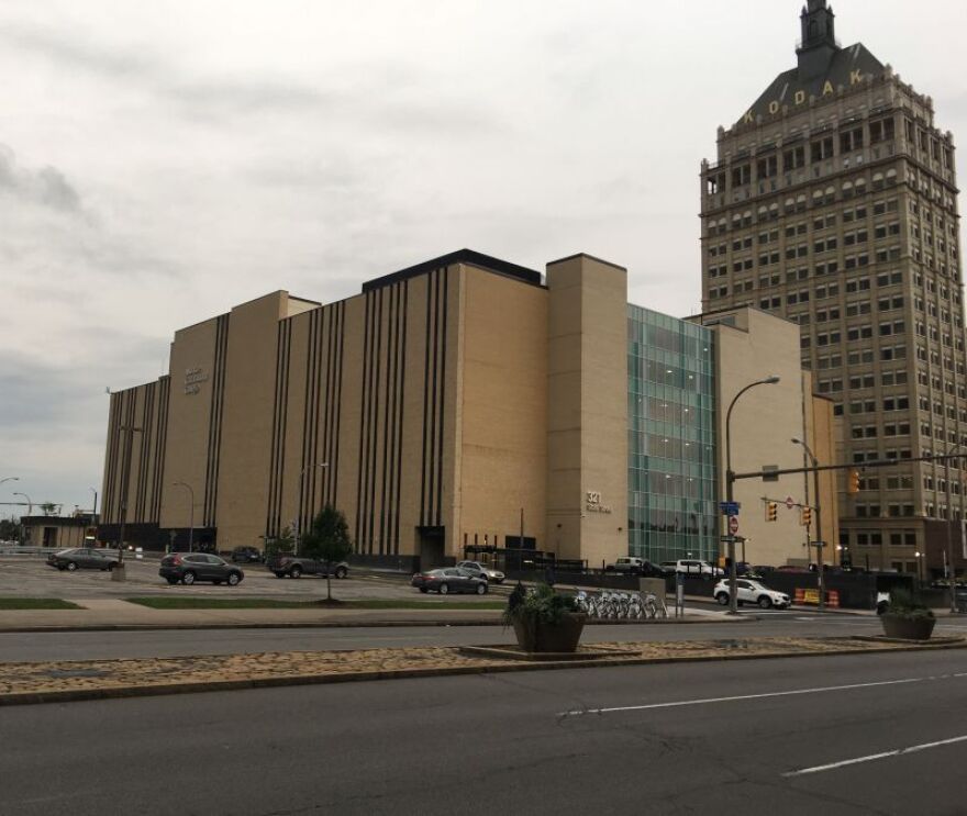 The front desk in the lobby at the building next to the Kodak Headquarters Tower was well staffed with student volunteers, teachers and college officials, handing out snacks, and directions to many of the students who were coming into the first building for the first time and may not have been exactly sure where to go.