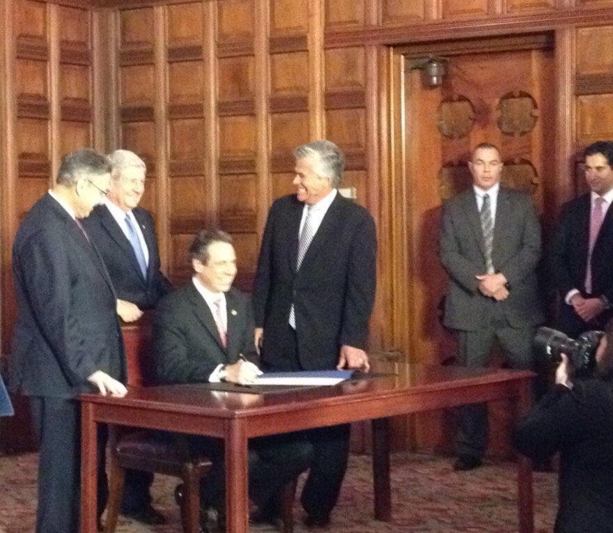 Cuomo credits the budget, as well as agreements approved in mid-March ,for implementing new teacher evaluations, pension changes that create a new tier of lowered benefits for public employees, and helping local governments with Medicaid costs. The governor says a major infrastructure initiative will repair dilapidated roads and bridges and create construction jobs.