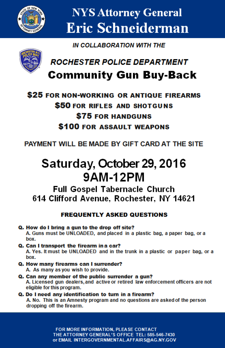 Rochester Police and the State Attorney General's Office are holding a community gun buyback tomorrow in the city.