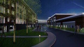 The artist's renderings of the future Skyview Park apartments show a modern, four-story building linked by a glass-enclosed bridge to a smaller structure…